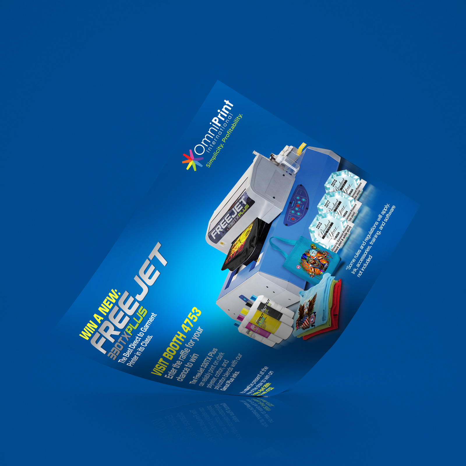 Project: Design a flyer consistent with the client's brand, with the goal of bringing interested customers to their trade show booth to register for a free printer raffle, generating in-person leads.